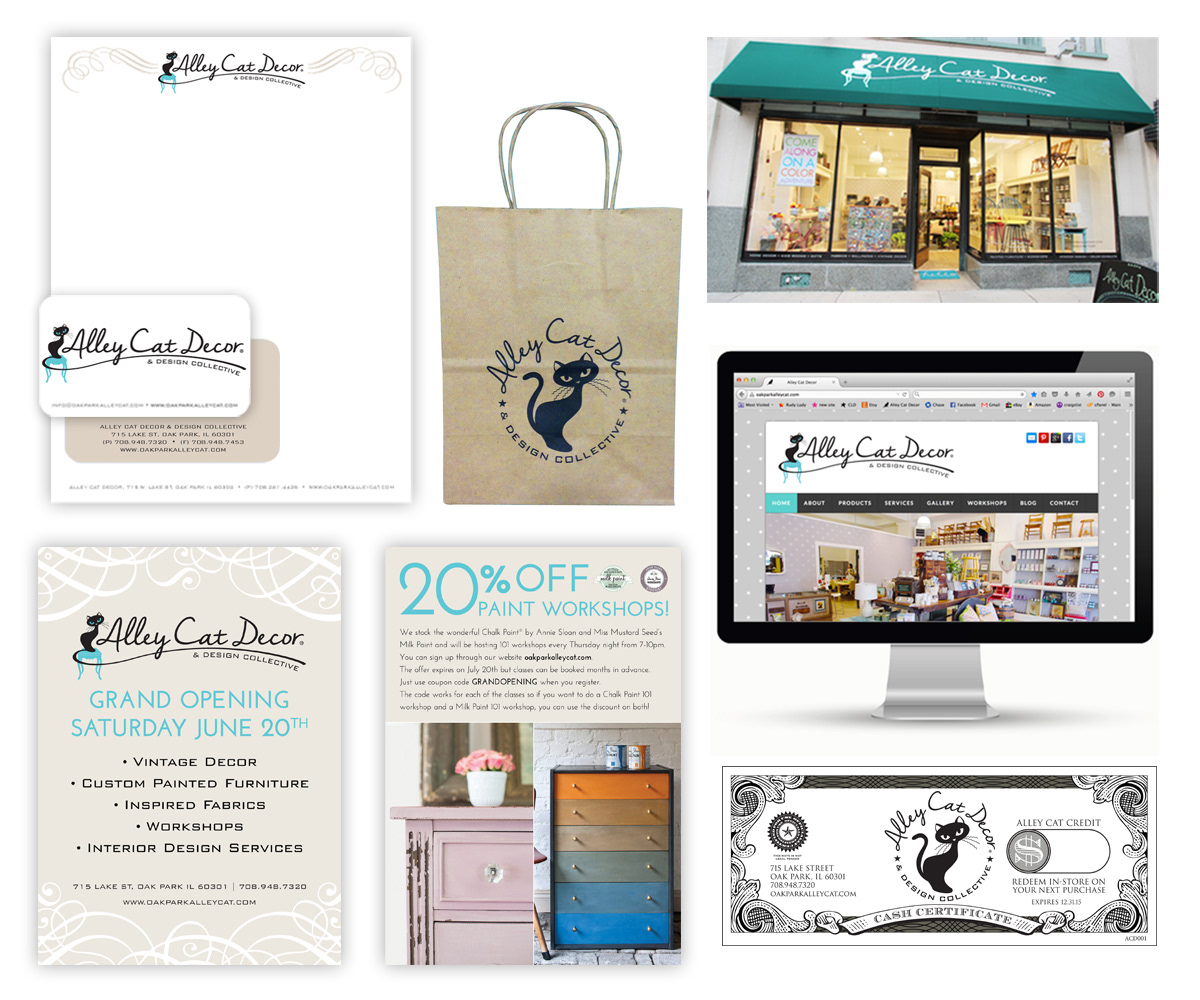 Complete Brand Identity for Alley Cat Decor. An Interior Design and Home Decor shop in Oak Park.