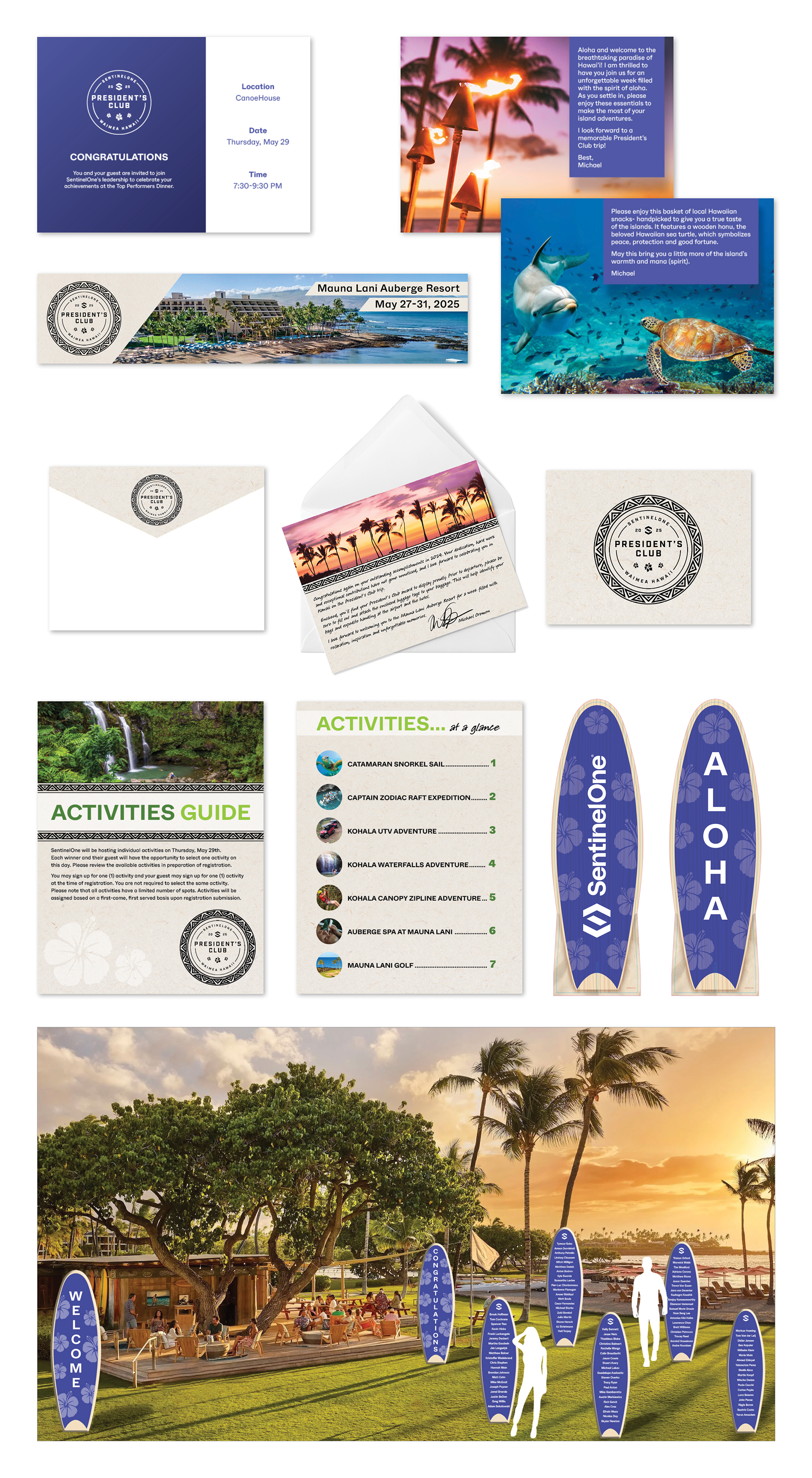 Branded Event & Travel Collateral for Sentinel One President's Club Vacation in Maui.